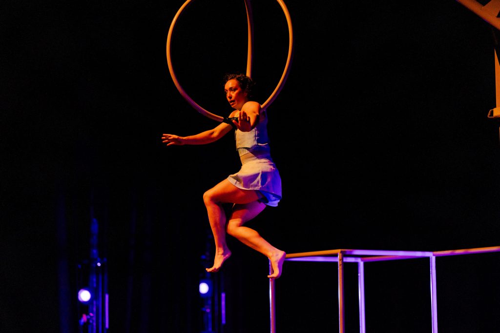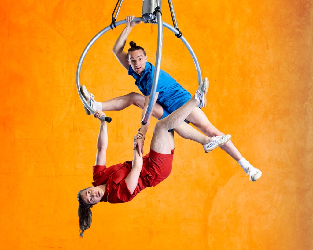‘Level Up’ is a wildly inventive contemporary circus show where four acrobats take on a custom-built, fully functional claw machine.